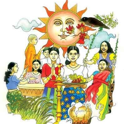 අප්රේල් මස 14 වැනි සඳුදා පූර්වභාග 04.04 තඹ වස්ත්රාහරණයෙන් සැරසී දකුණු දිශාව බලා ළිප් බැඳ ගිනි මොළවා කිරි බතක් ද කැවිලි වර්ගයක් ද දී කිරි සහ විලඳ ද පිළියෙල කර ගැනීම මැනවි.